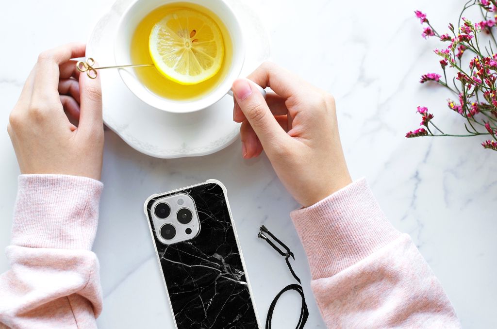iPhone 14 Pro Max Anti-Shock Hoesje Marmer Zwart - Origineel Cadeau Vader