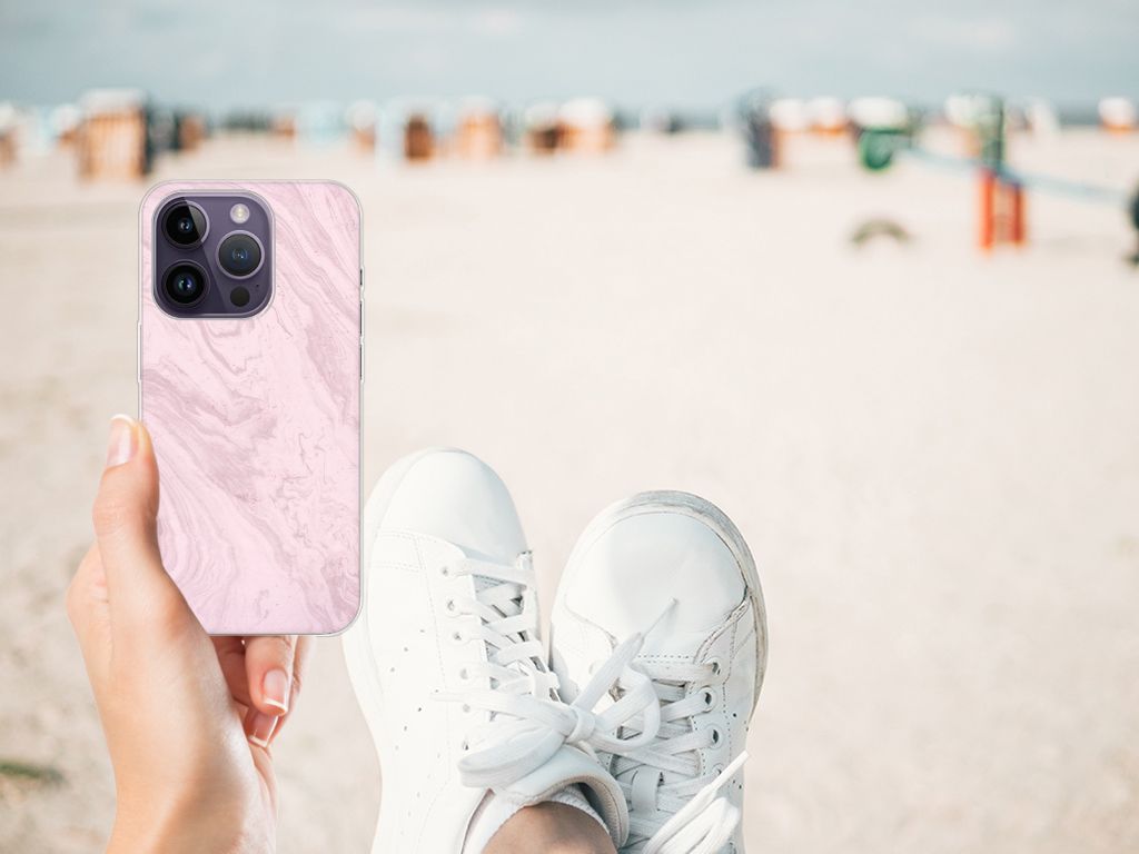 Apple iPhone 14 Pro TPU Siliconen Hoesje Marble Pink - Origineel Cadeau Vriendin