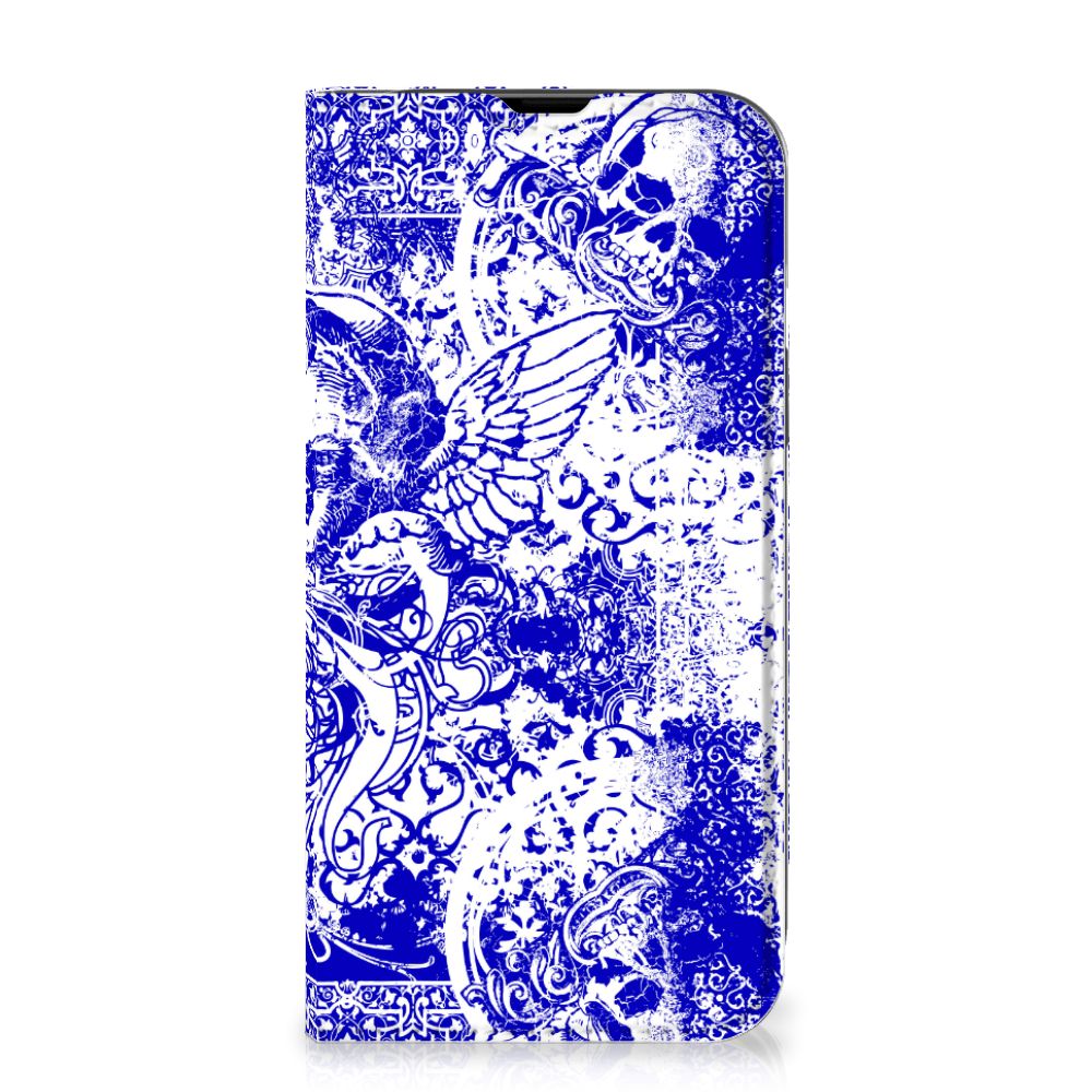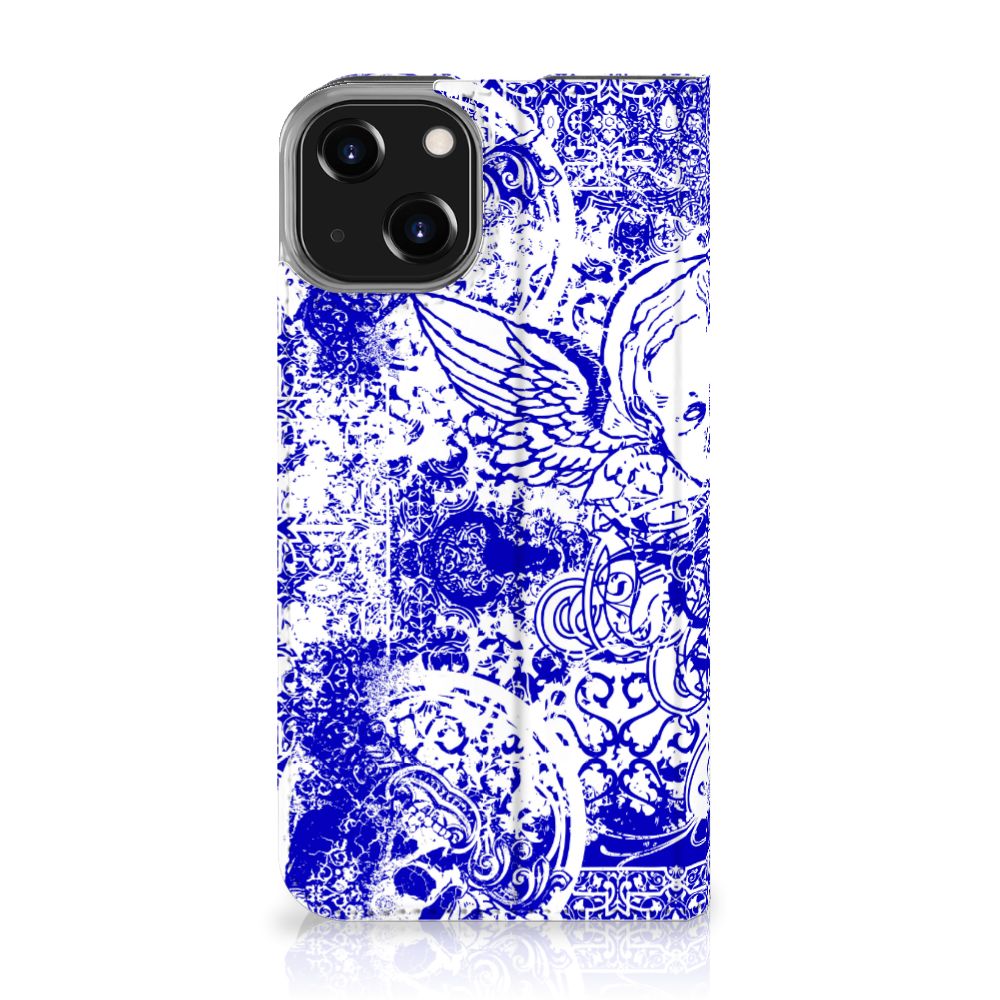 Mobiel BookCase iPhone 14 Angel Skull Blauw