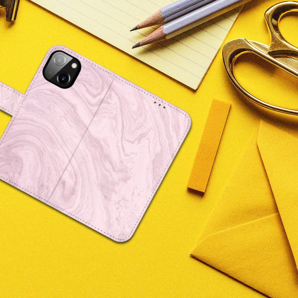 Apple iPhone 14 Bookcase Marble Pink - Origineel Cadeau Vriendin