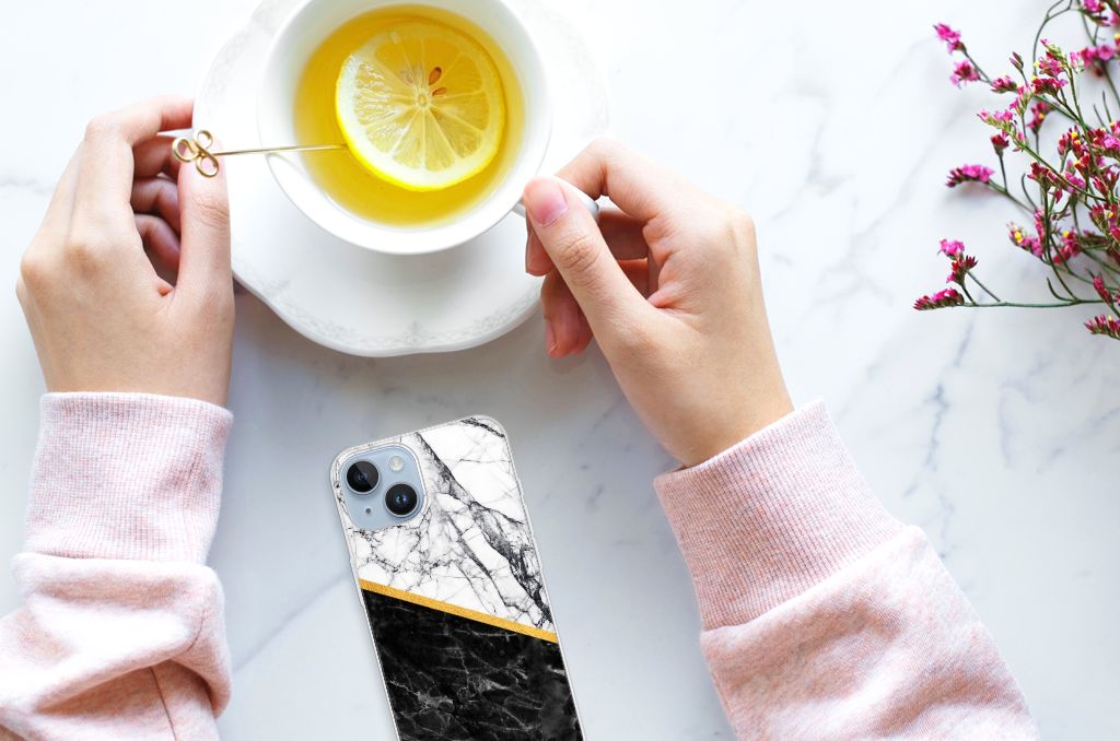 Apple iPhone 14 TPU Siliconen Hoesje Marmer Wit Zwart - Origineel Cadeau Man