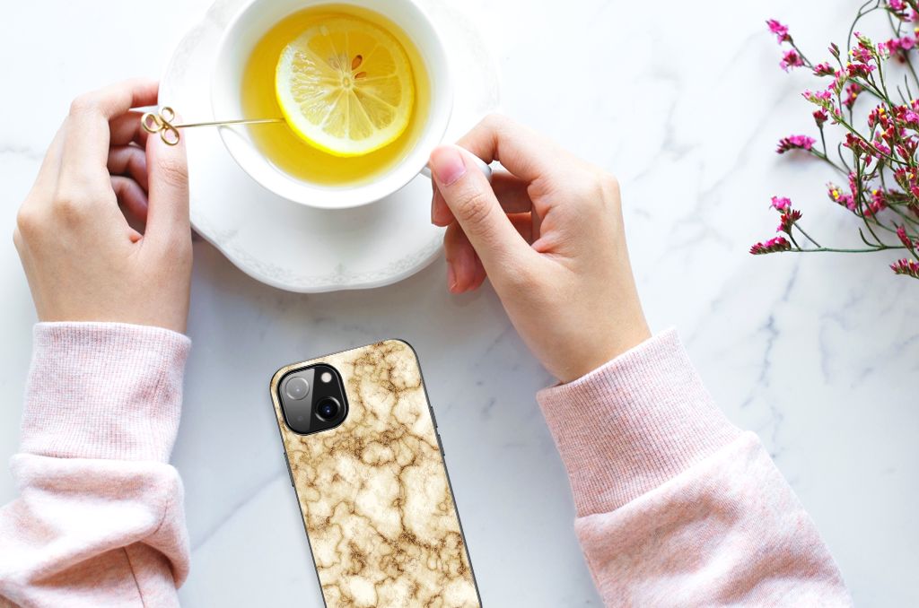 Apple iPhone 13/14 Marmeren Print Telefoonhoesje Marmer Goud
