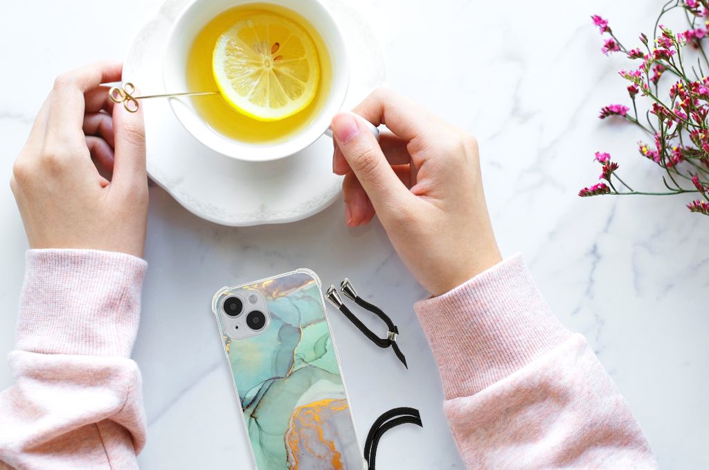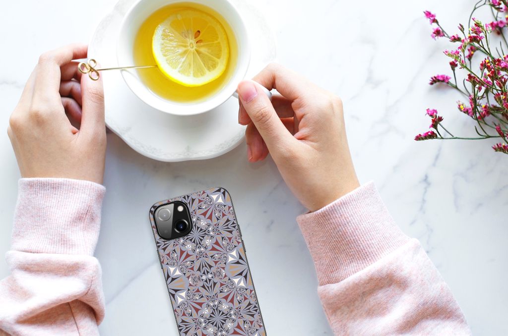 Apple iPhone 13/14 Marmeren Print Telefoonhoesje Flower Tiles