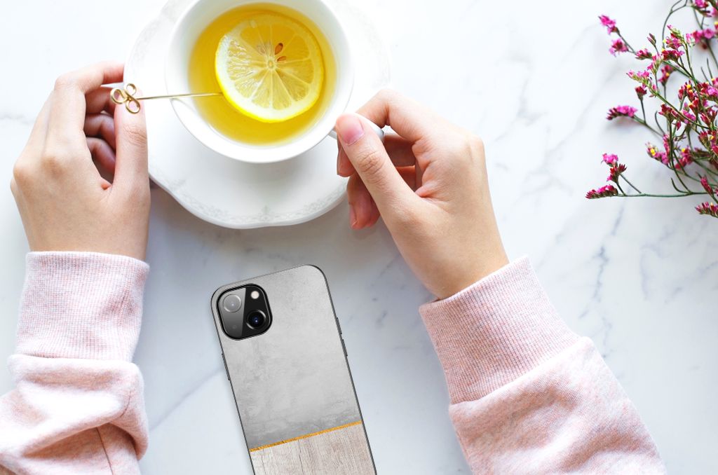 Apple iPhone 13 | iPhone 14 Houten Print Telefoonhoesje Wood Concrete
