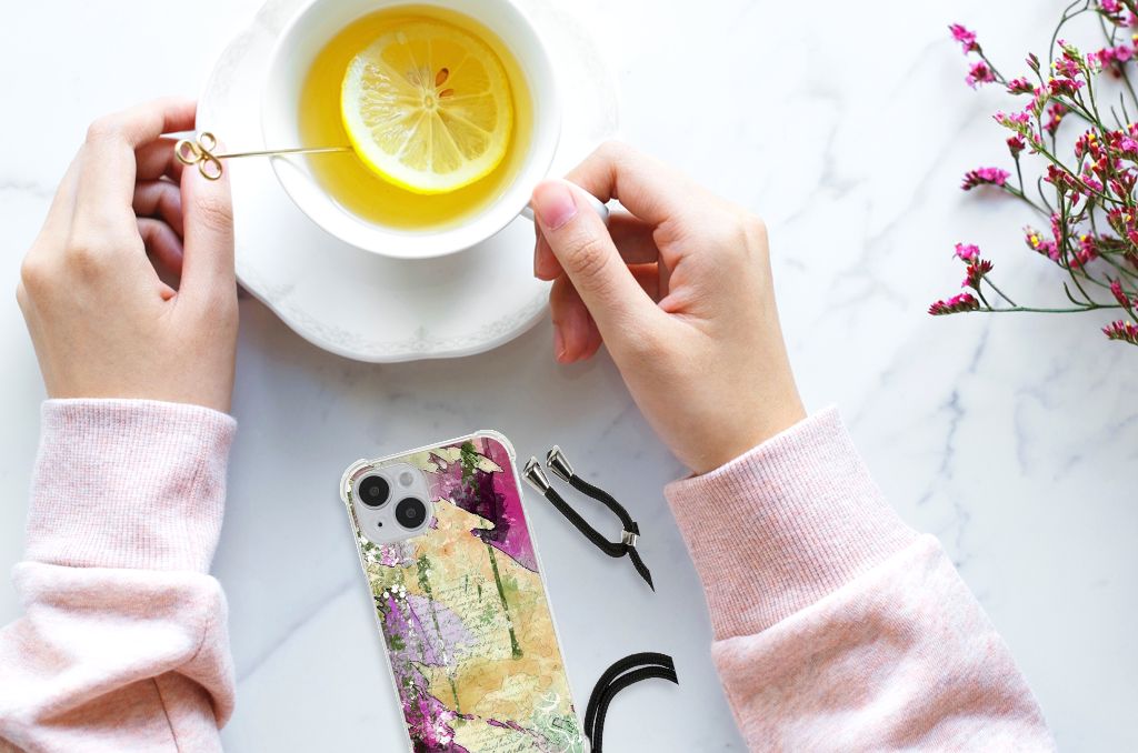 Apple iPhone 13 | iPhone 14 Bloemen Hoesje Gouden Bloemen