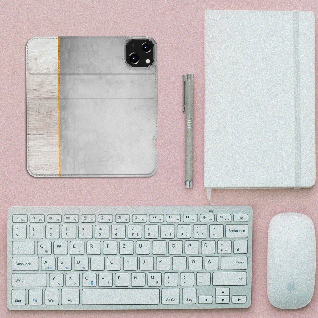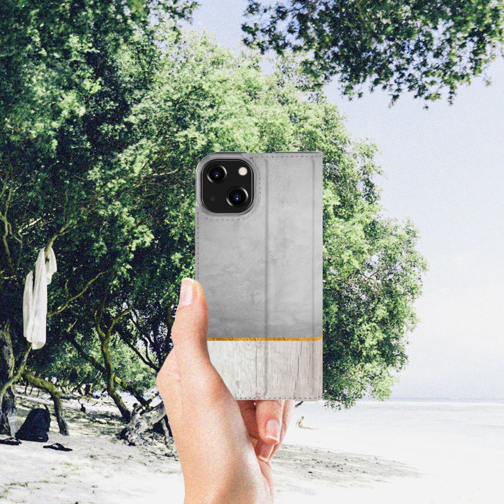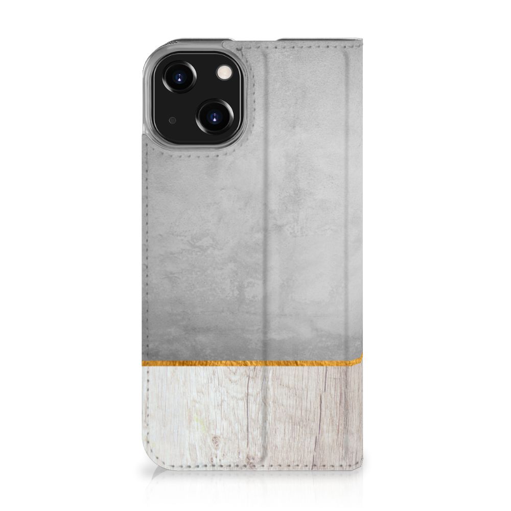 iPhone 14 Book Wallet Case Wood Concrete