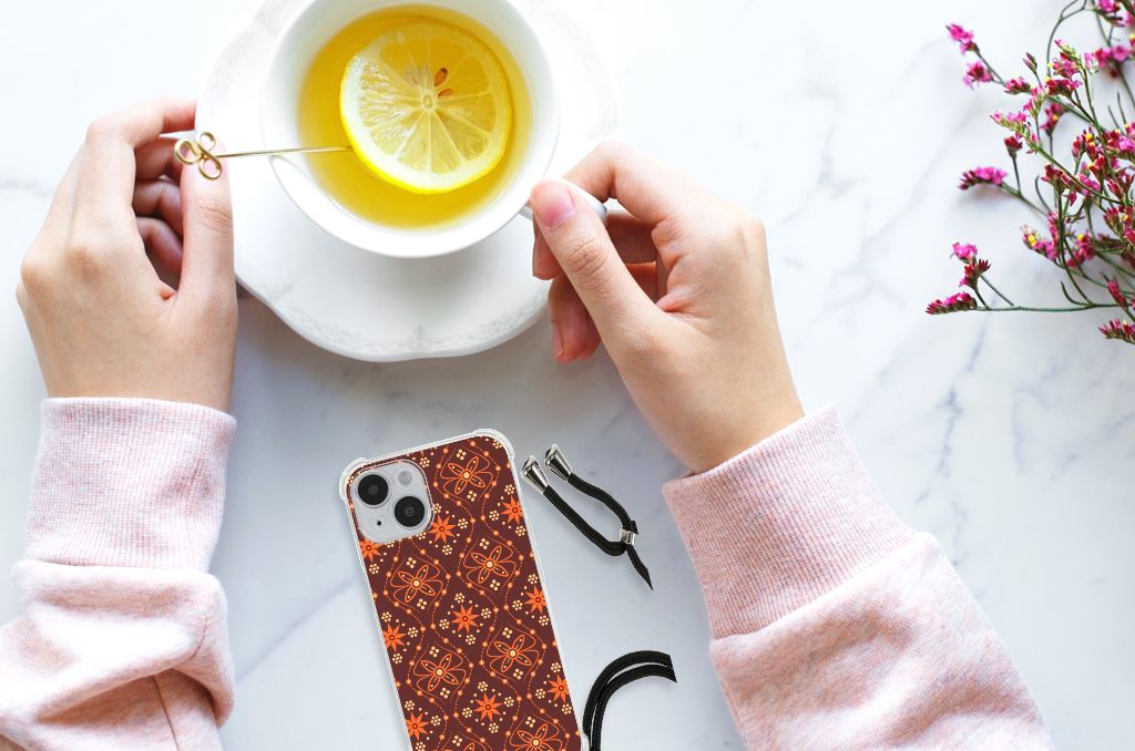 iPhone 14 Doorzichtige Silicone Hoesje Batik Oranje
