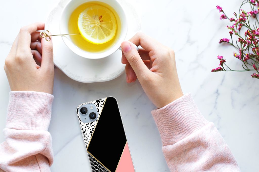 Apple iPhone 14 TPU Hoesje Zwart Roze Vormen
