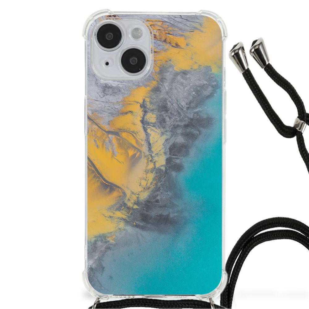 iPhone 14 Anti-Shock Hoesje Marble Blue Gold