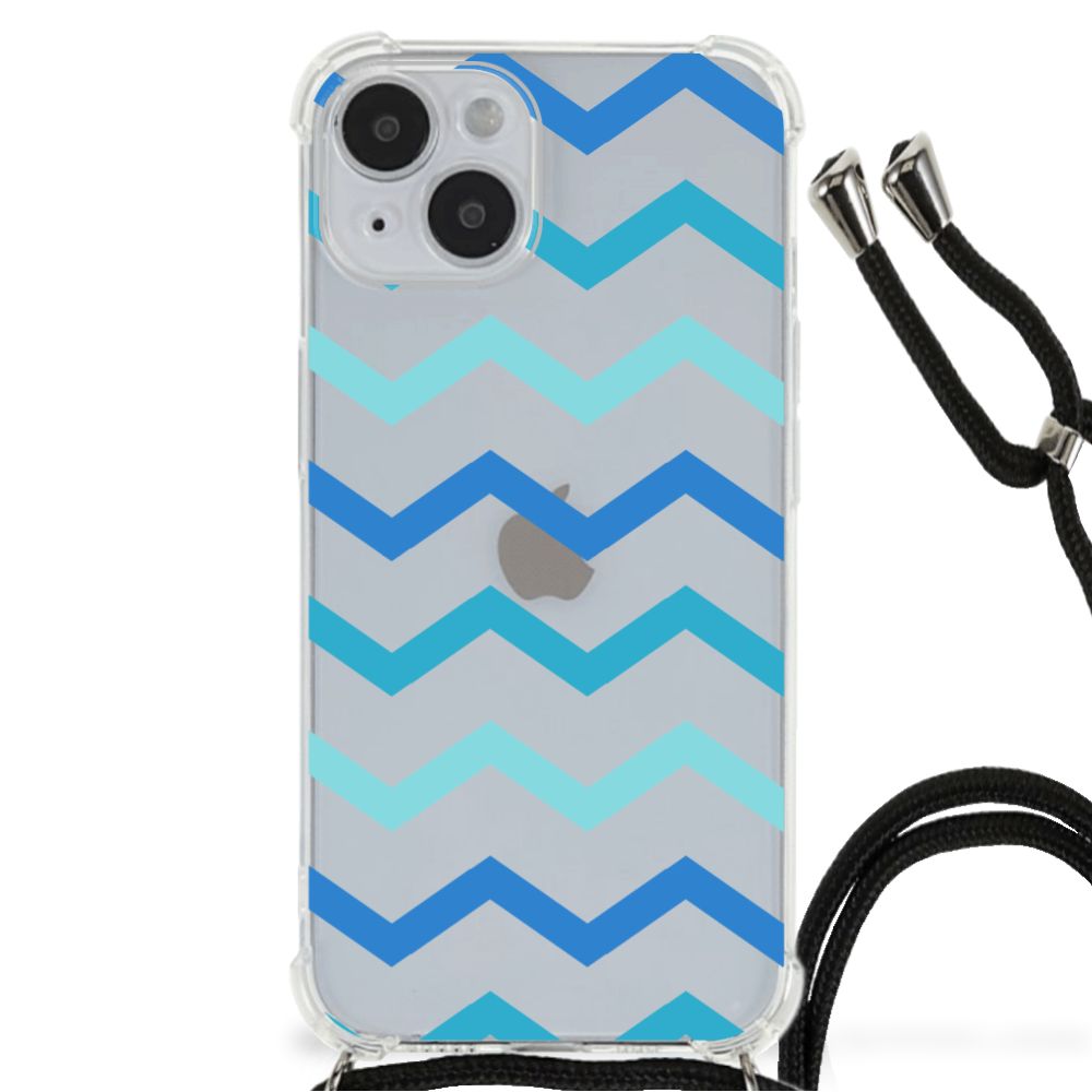 iPhone 14 Doorzichtige Silicone Hoesje Zigzag Blauw