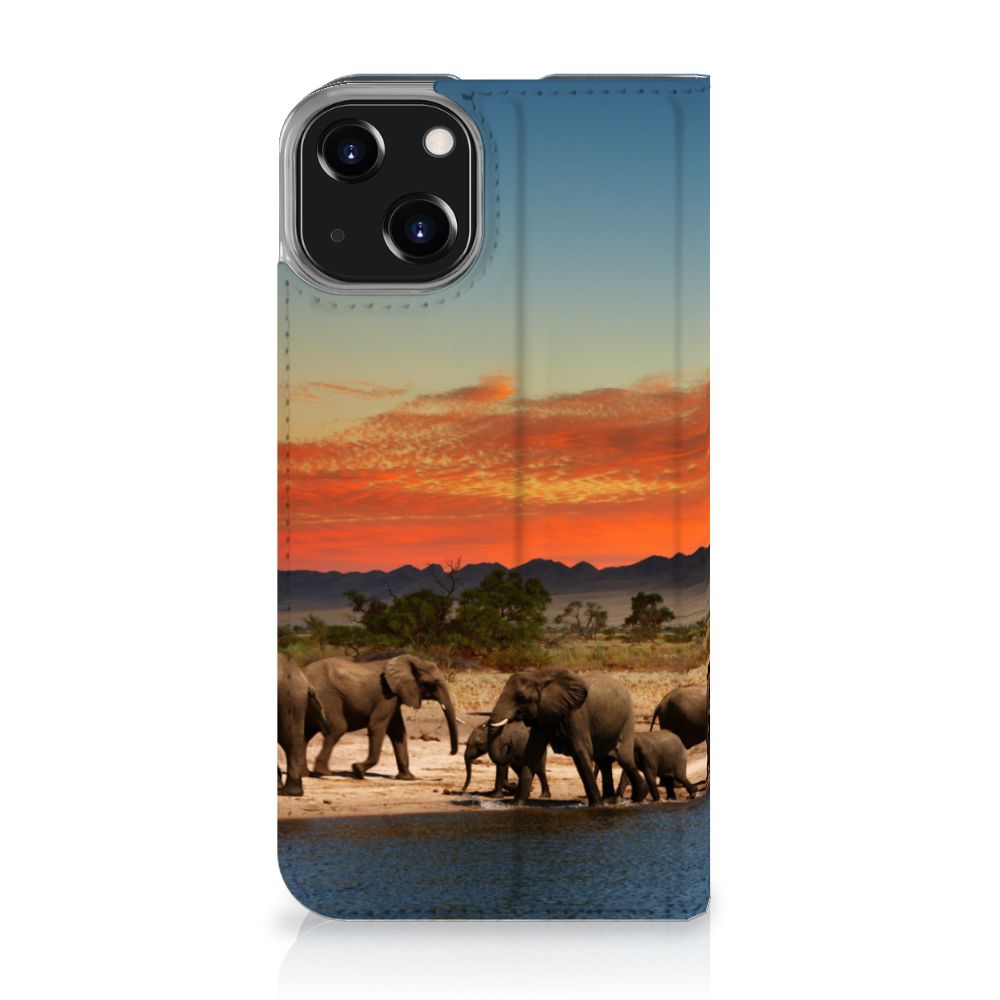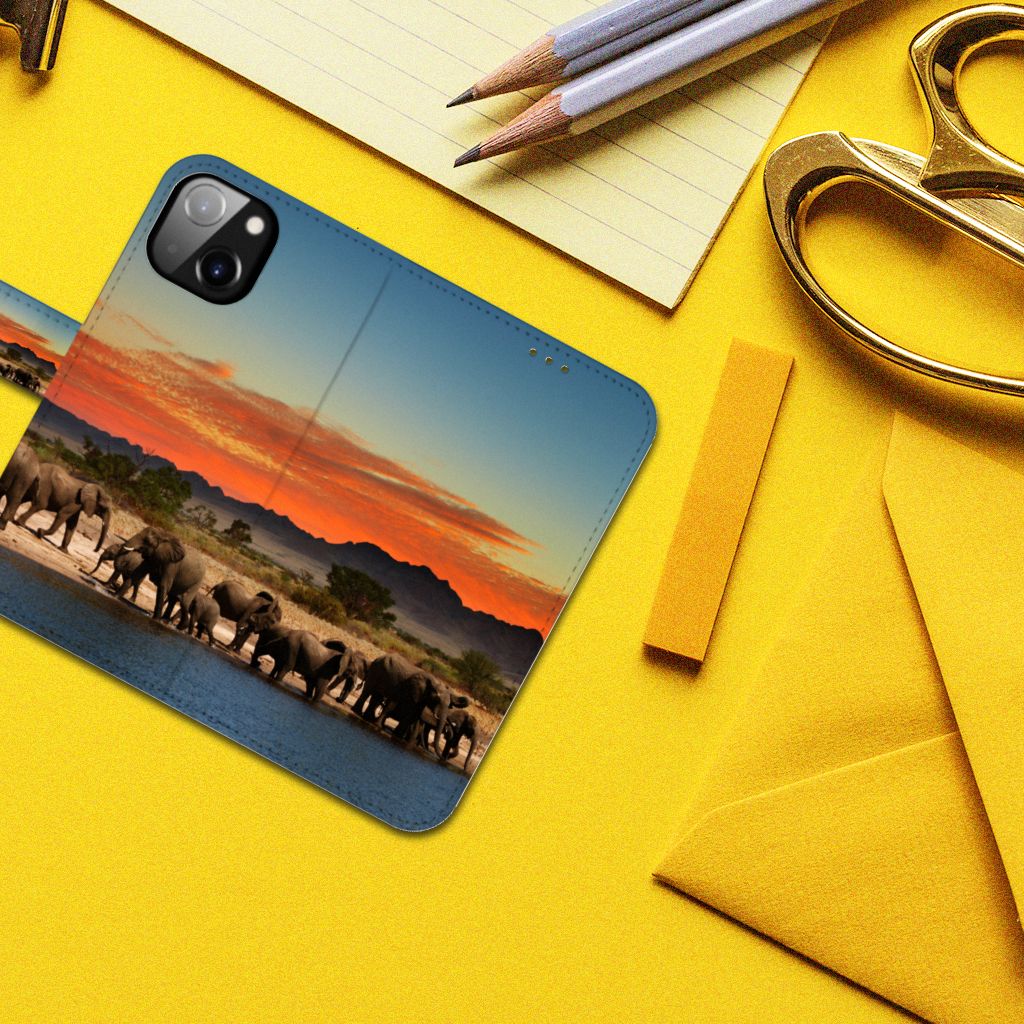 Apple iPhone 14 Telefoonhoesje met Pasjes Olifanten