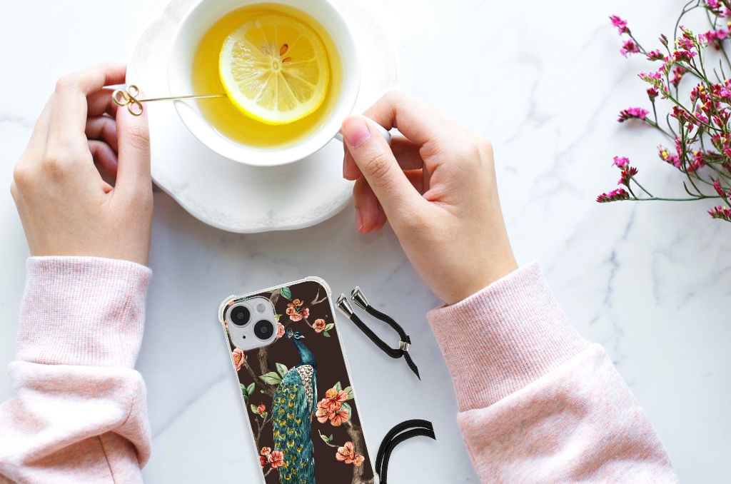 iPhone 14 Case Anti-shock Pauw met Bloemen