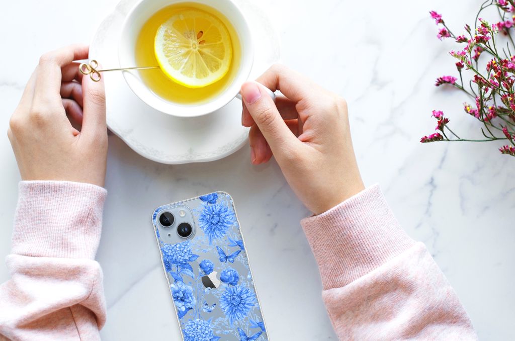 TPU Case voor Apple iPhone 14 Flowers Blue