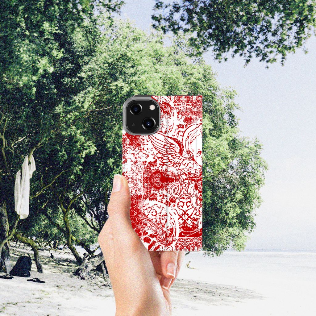 Mobiel BookCase iPhone 14 Angel Skull Rood