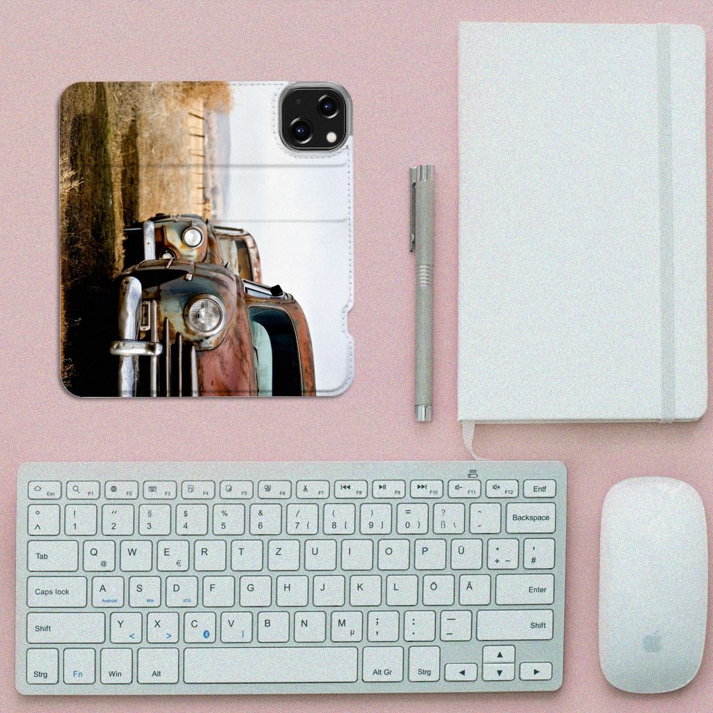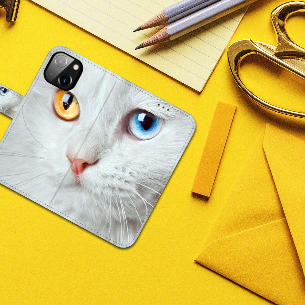 Apple iPhone 14 Telefoonhoesje met Pasjes Witte Kat