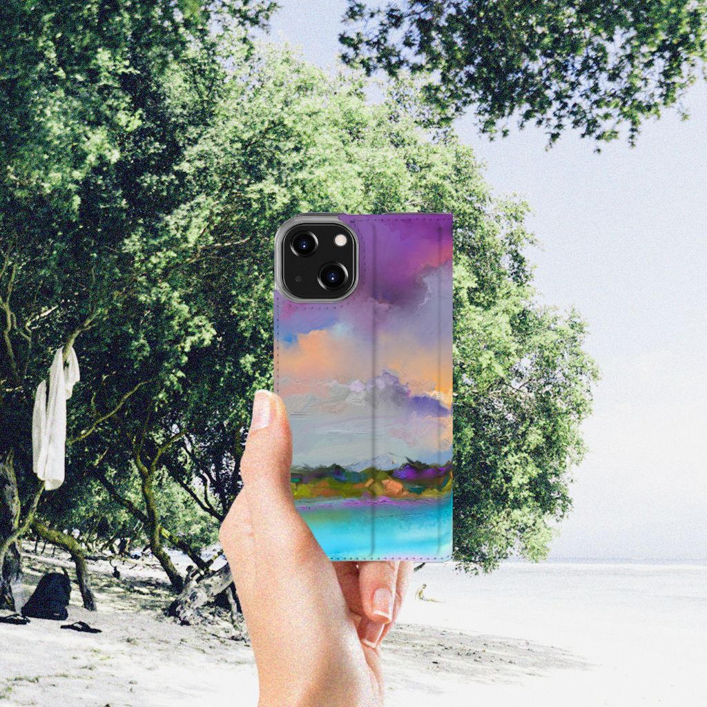Kleurrijke Telefoonhoesje voor Apple iPhone 13 | iPhone 14 Watercolor Paars