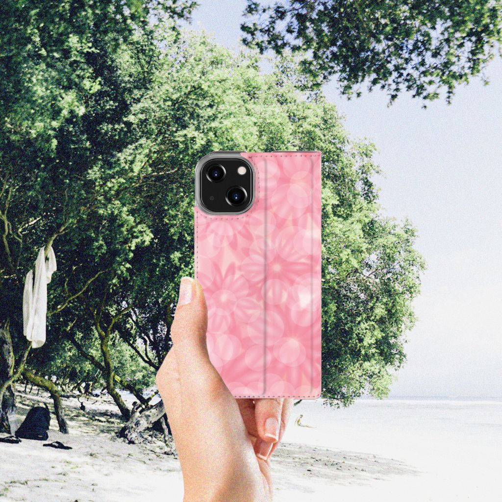 Telefoonhoesje met Pasjes voor Apple iPhone 14 Pink Peacock