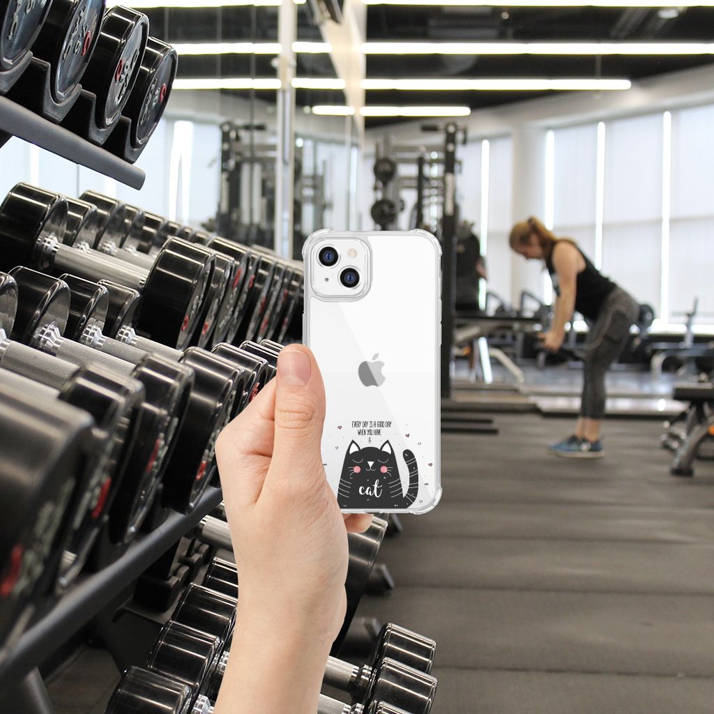 iPhone 14 Stevig Bumper Hoesje Cat Good Day