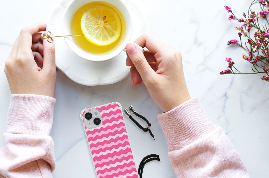 iPhone 14 Doorzichtige Silicone Hoesje Waves Pink
