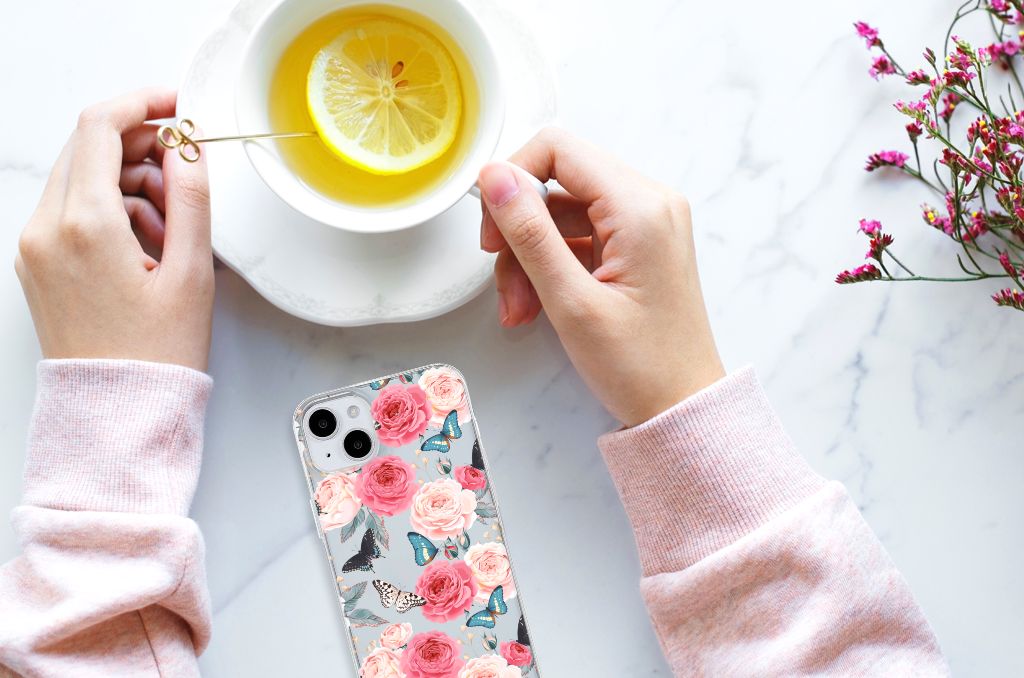 TPU Case voor iPhone 15 Plus Flowers Blue