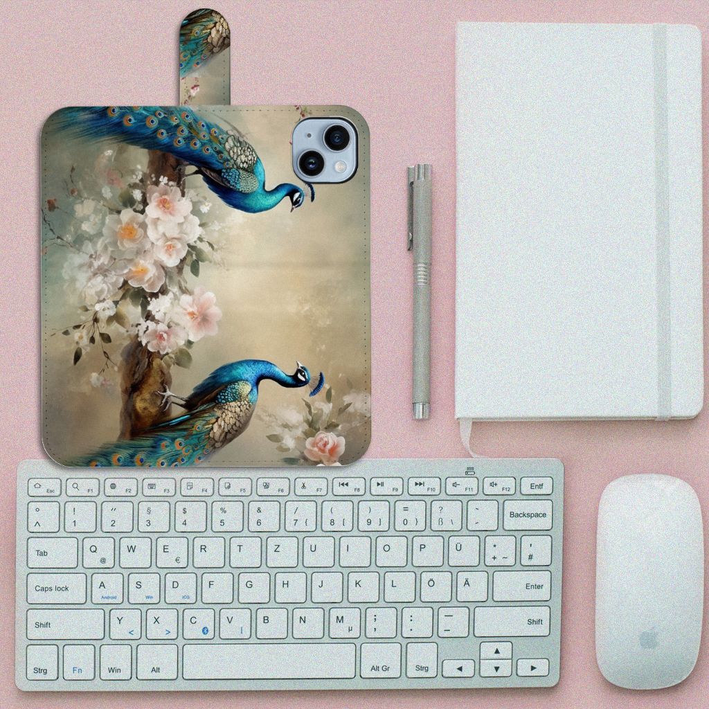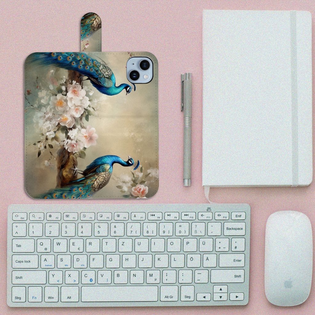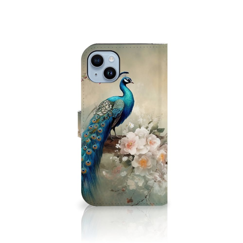 Telefoonhoesje met Pasjes voor iPhone 15 Plus Vintage Pauwen