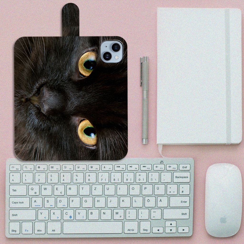 iPhone 15 Plus Telefoonhoesje met Pasjes Zwarte Kat