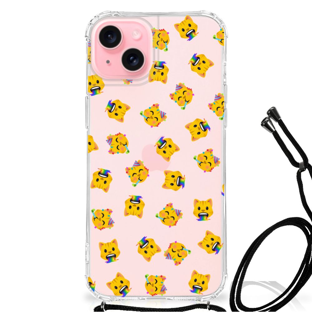 Doorzichtige Silicone Hoesje voor iPhone 15 Plus Katten Emojis