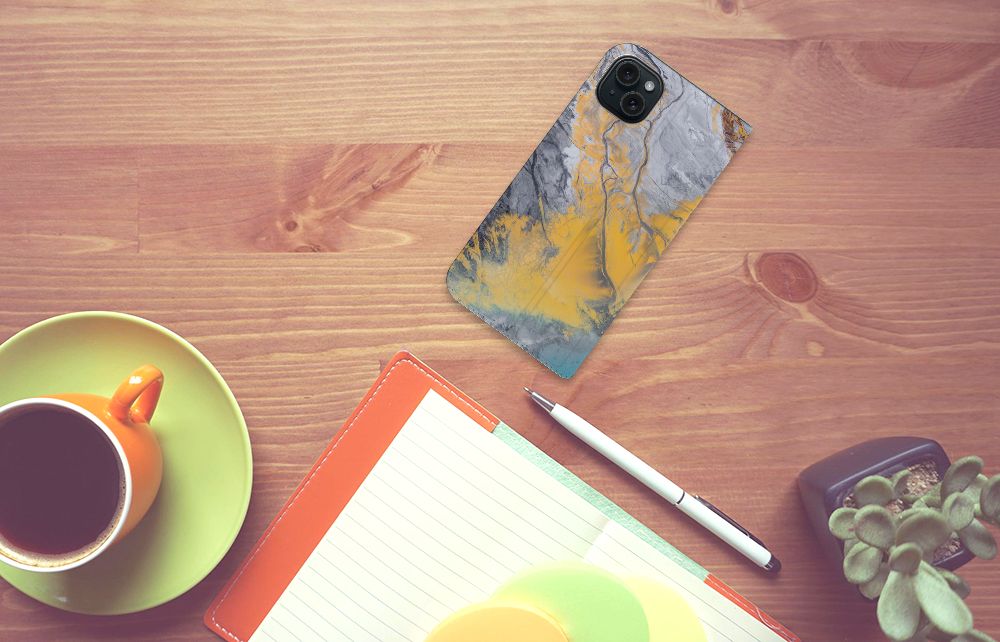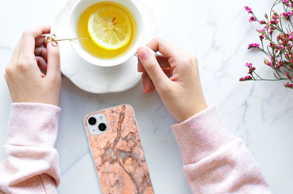 iPhone 15 Plus TPU Siliconen Hoesje Marmer Oranje