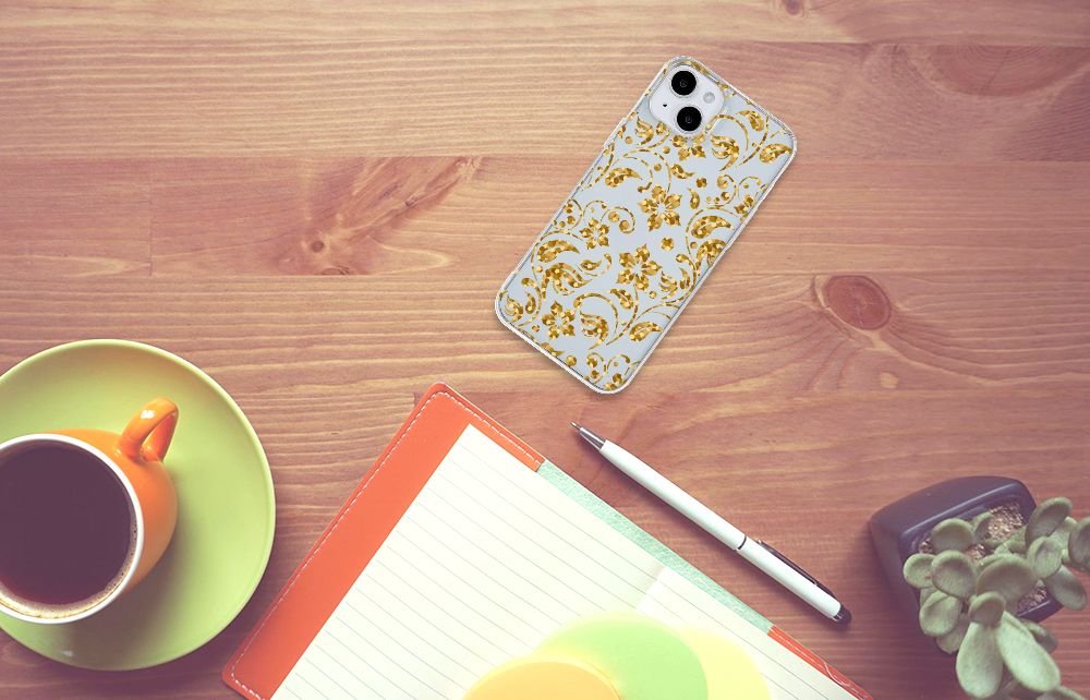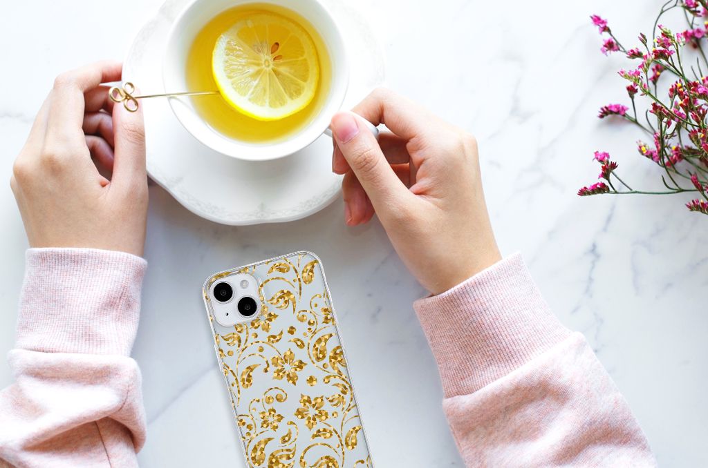 iPhone 15 Plus TPU Case Gouden Bloemen