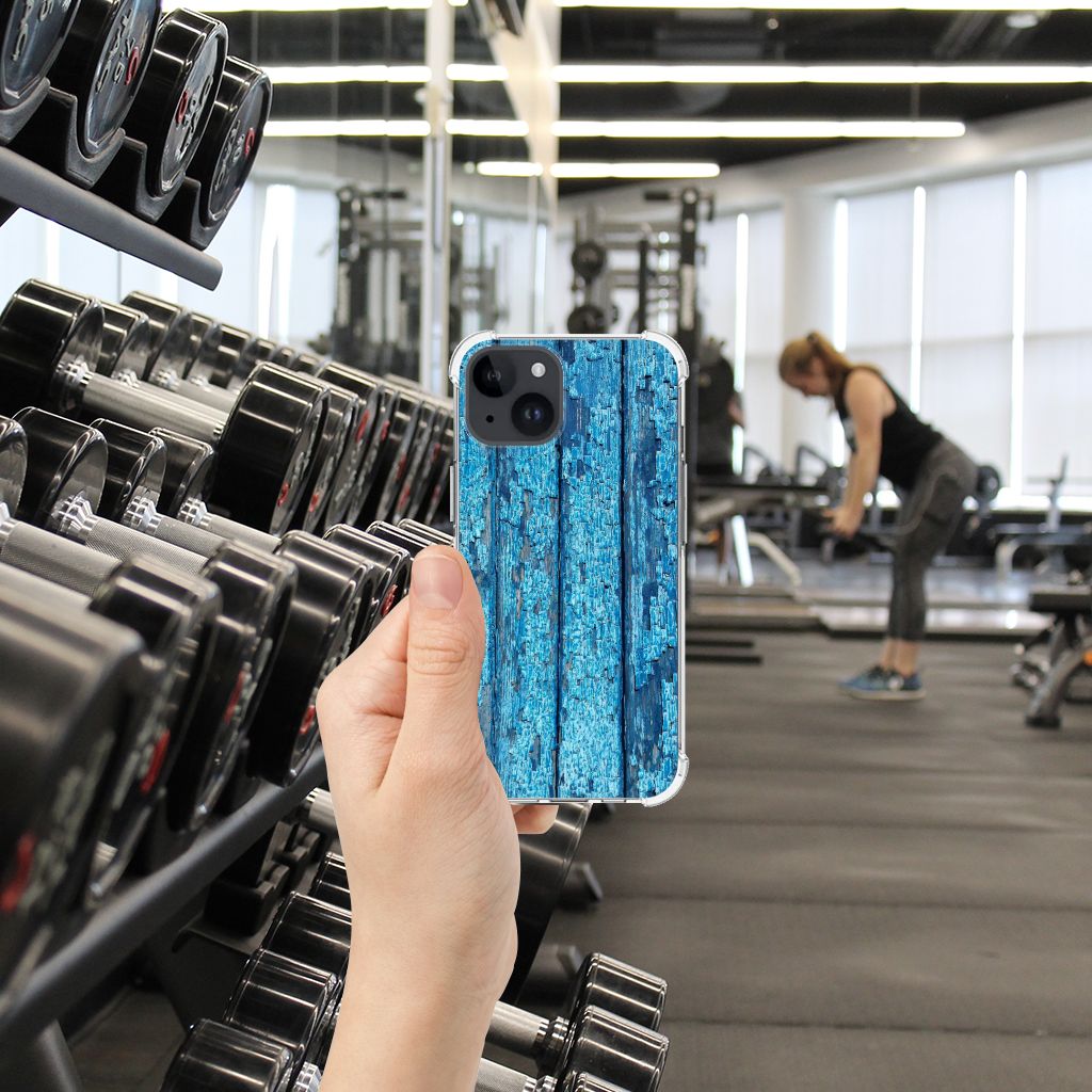 iPhone 15 Plus Stevig Telefoonhoesje Wood Blue