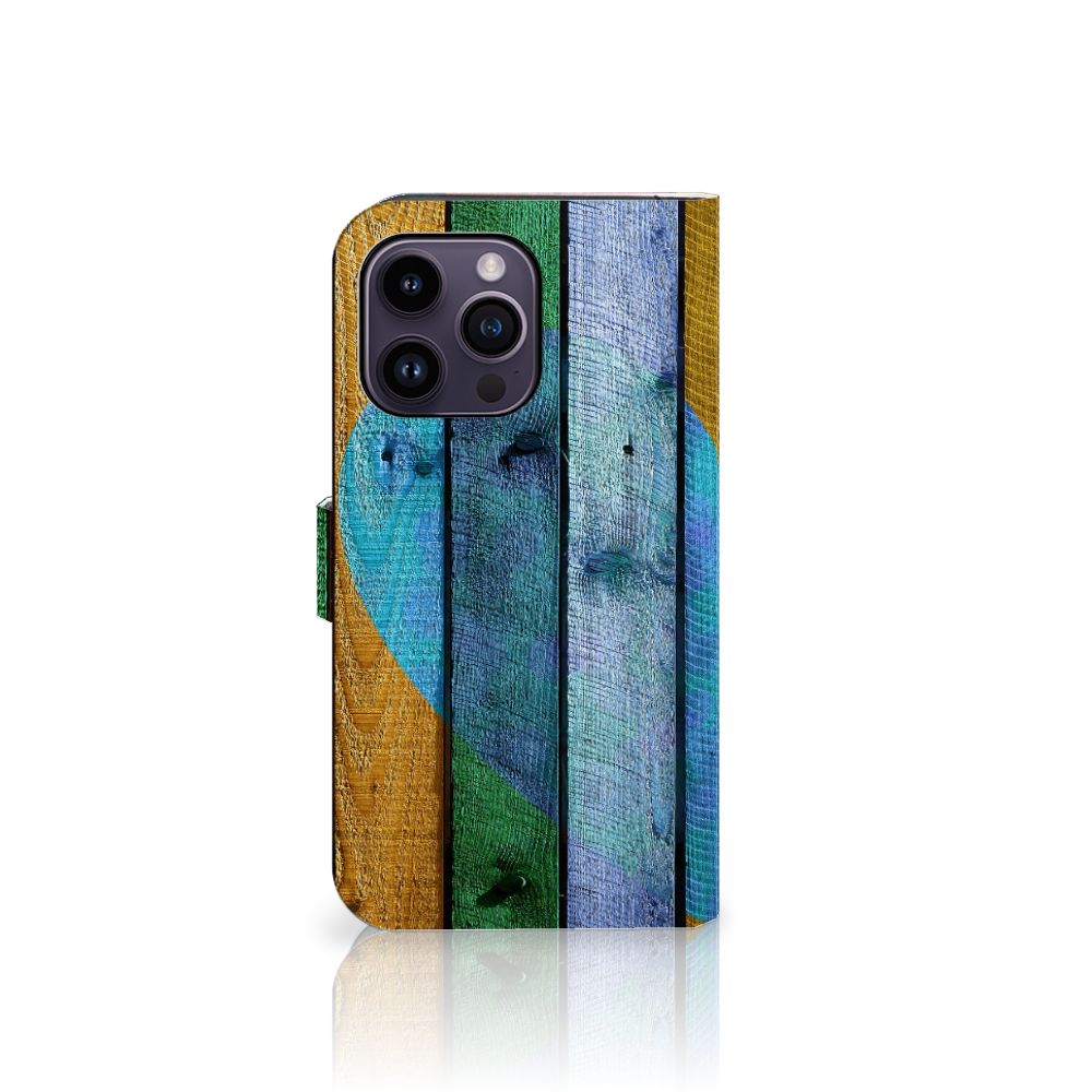 iPhone 15 Pro Max Book Style Case Wood Heart - Cadeau voor je Vriend