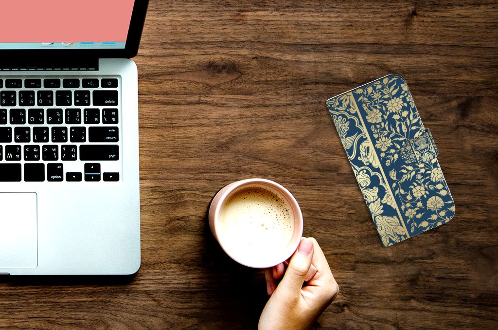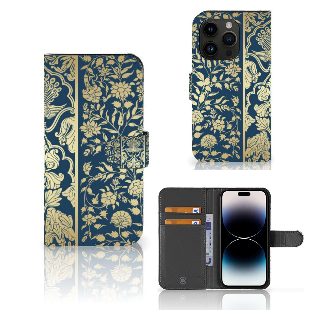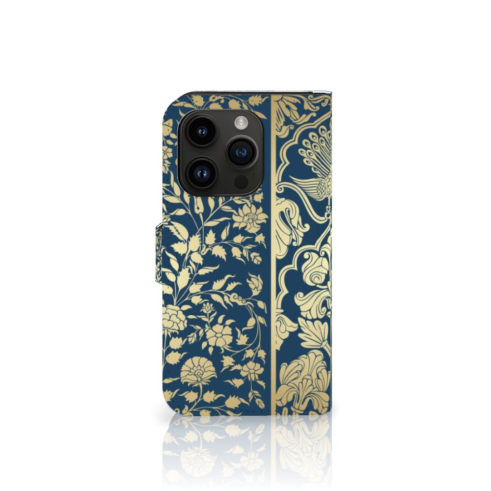 iPhone 15 Pro Portemonnee Hoesje Flowers Blue DTMP