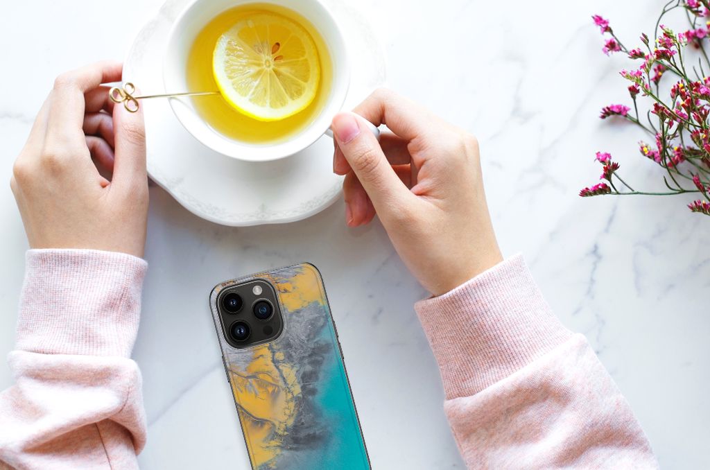iPhone 15 Pro Marmeren Print Telefoonhoesje Marble Blue Gold