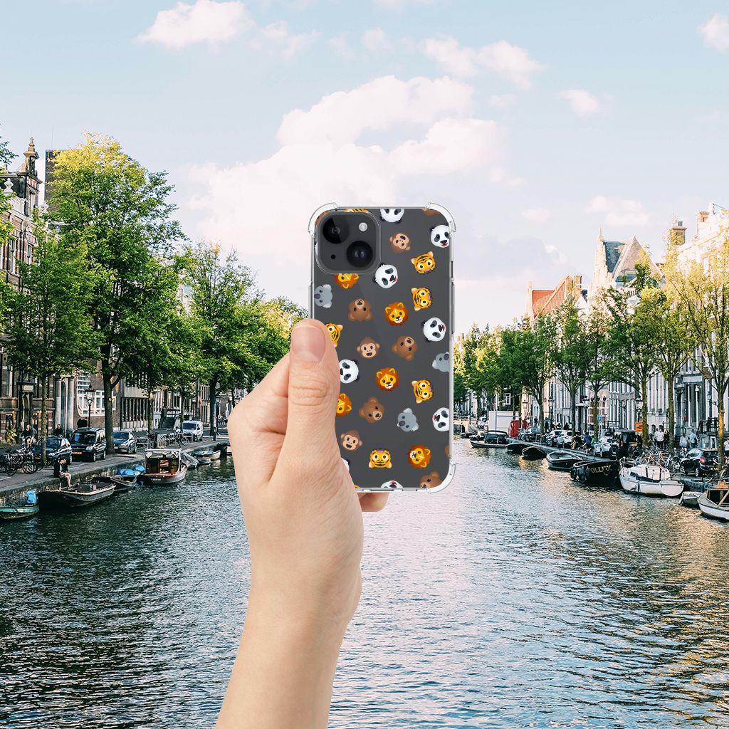 Doorzichtige Silicone Hoesje voor iPhone 15 Dieren Emojis