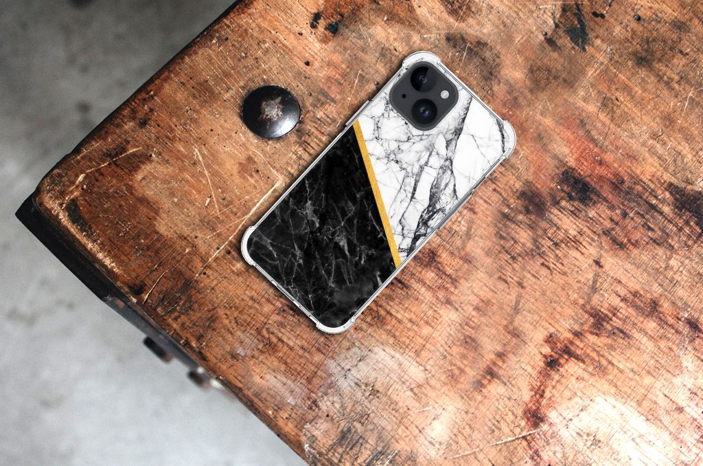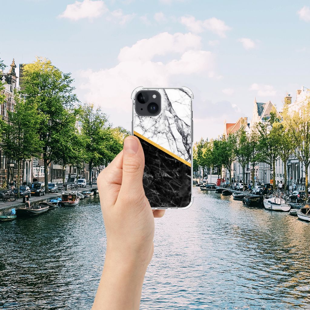 iPhone 15 Anti-Shock Hoesje Marmer Wit Zwart - Origineel Cadeau Man