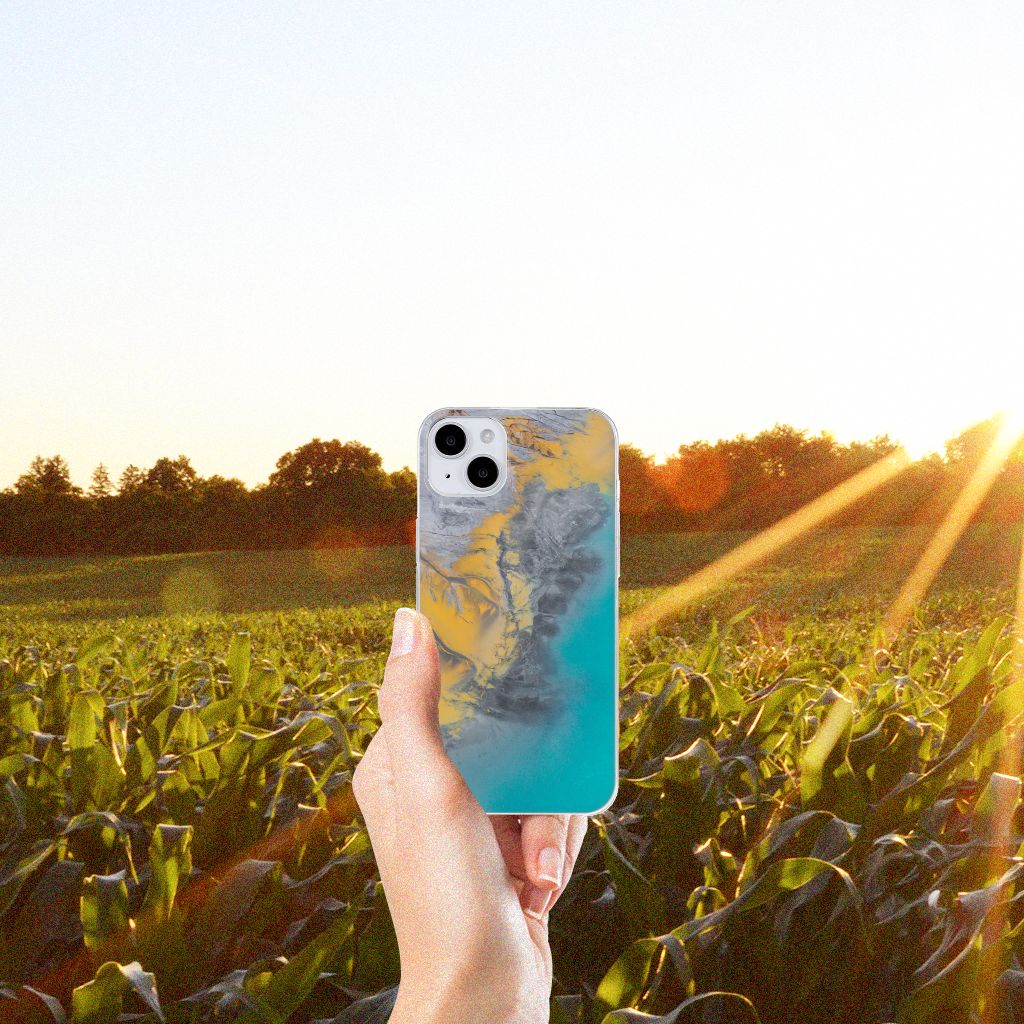 iPhone 15 TPU Siliconen Hoesje Marble Blue Gold