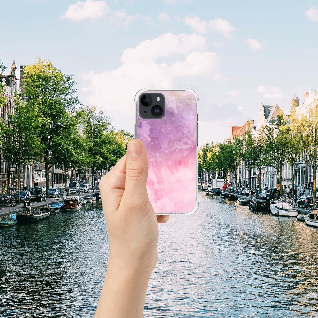 Kleurrijke Telefoonhoesje voor iPhone 15 Watercolor Paars