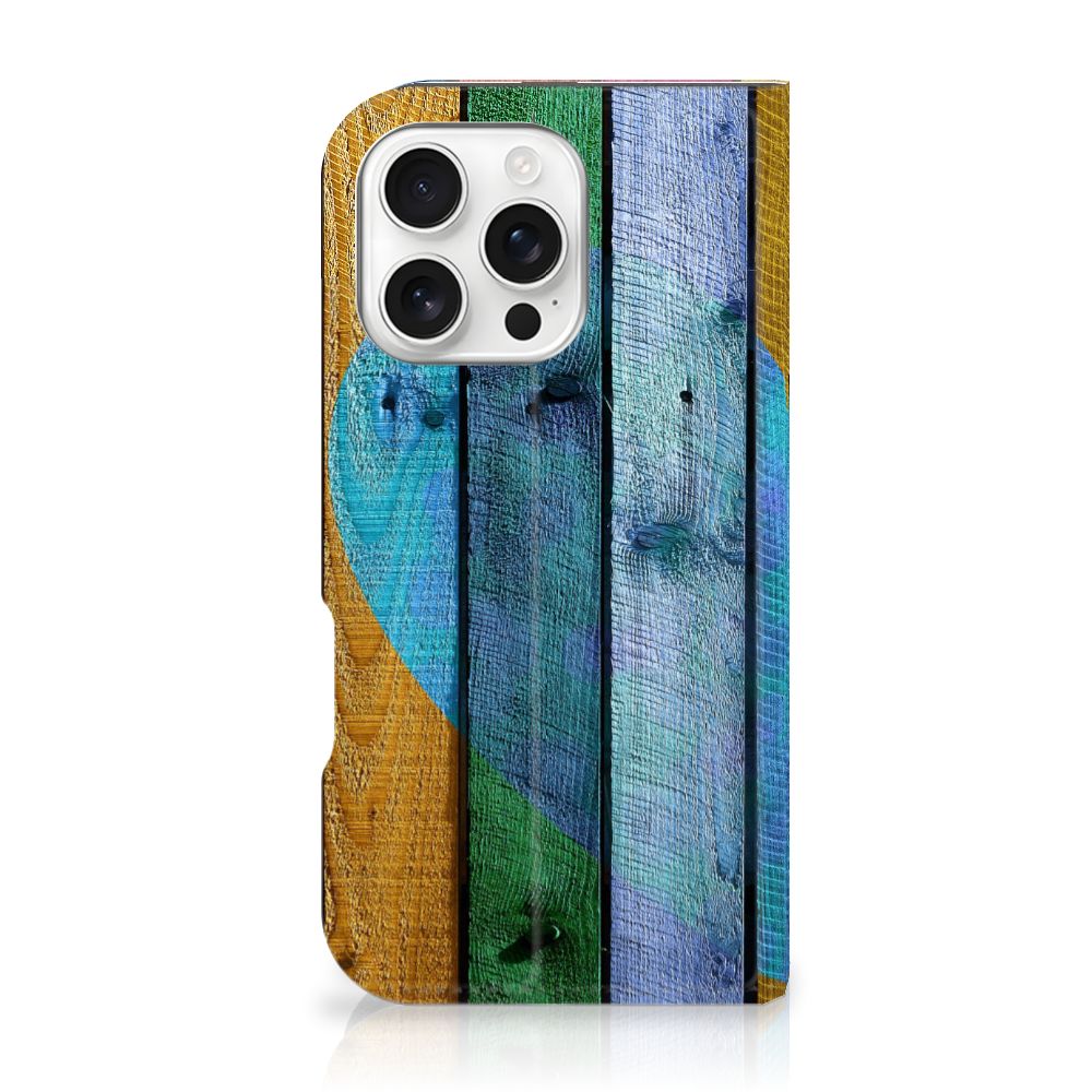iPhone 16 Pro Book Wallet Case Wood Heart - Cadeau voor je Vriend