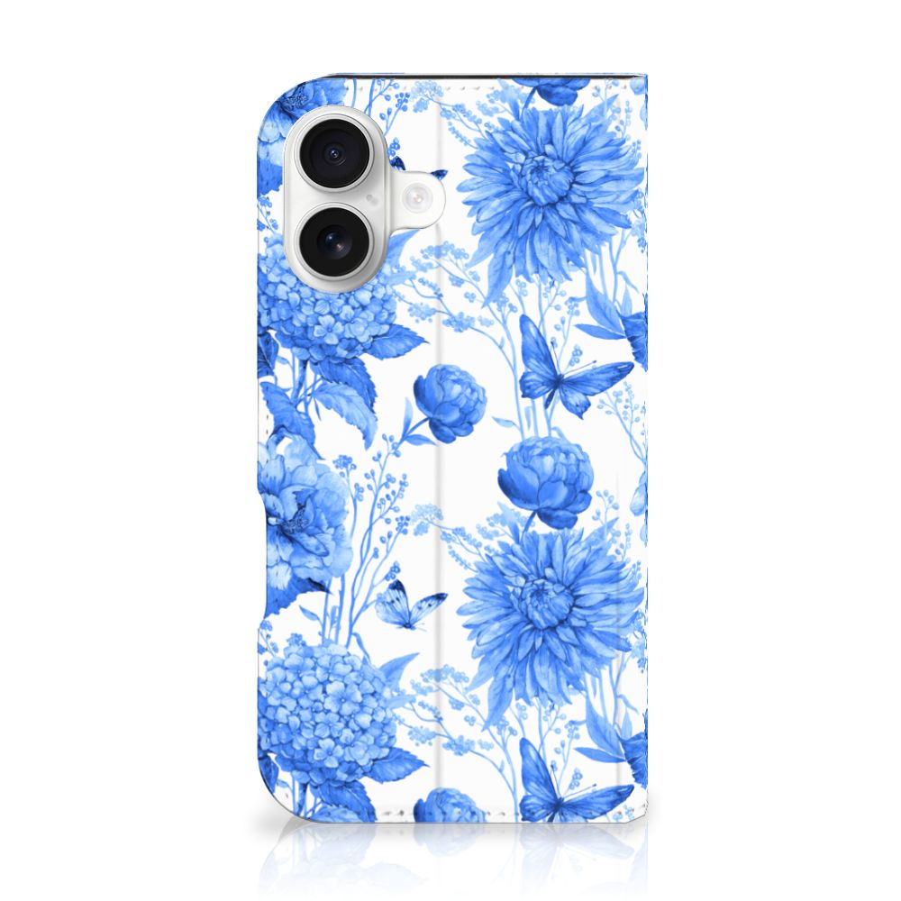 Smart Cover voor iPhone 16 Flowers Blue