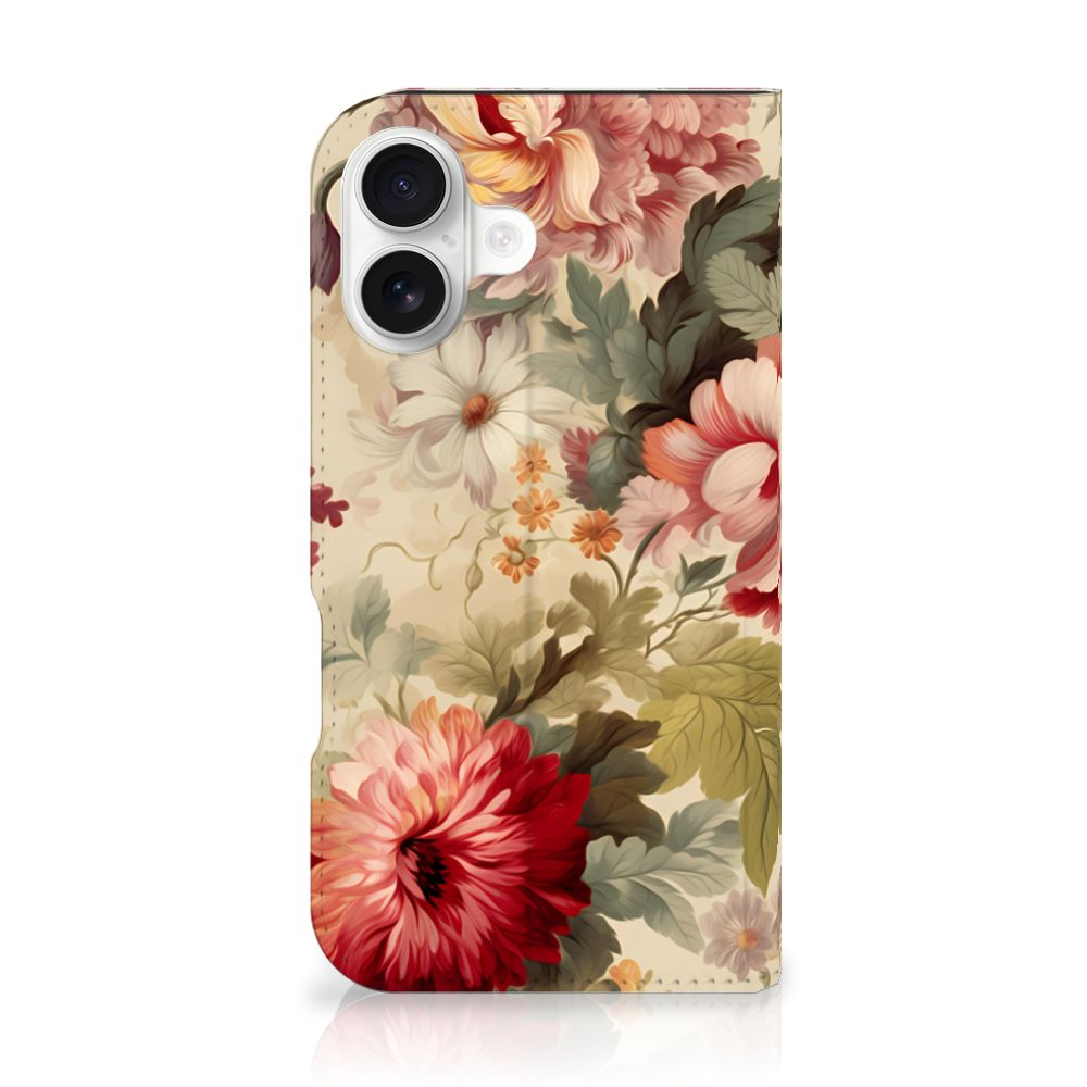Smart Cover voor iPhone 16 Vintage Bird Flowers