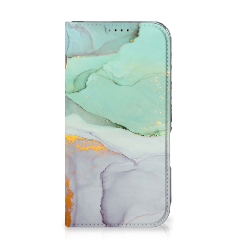 iPhone 16 Bookcase Marmer Wit Zwart - Origineel Cadeau Man