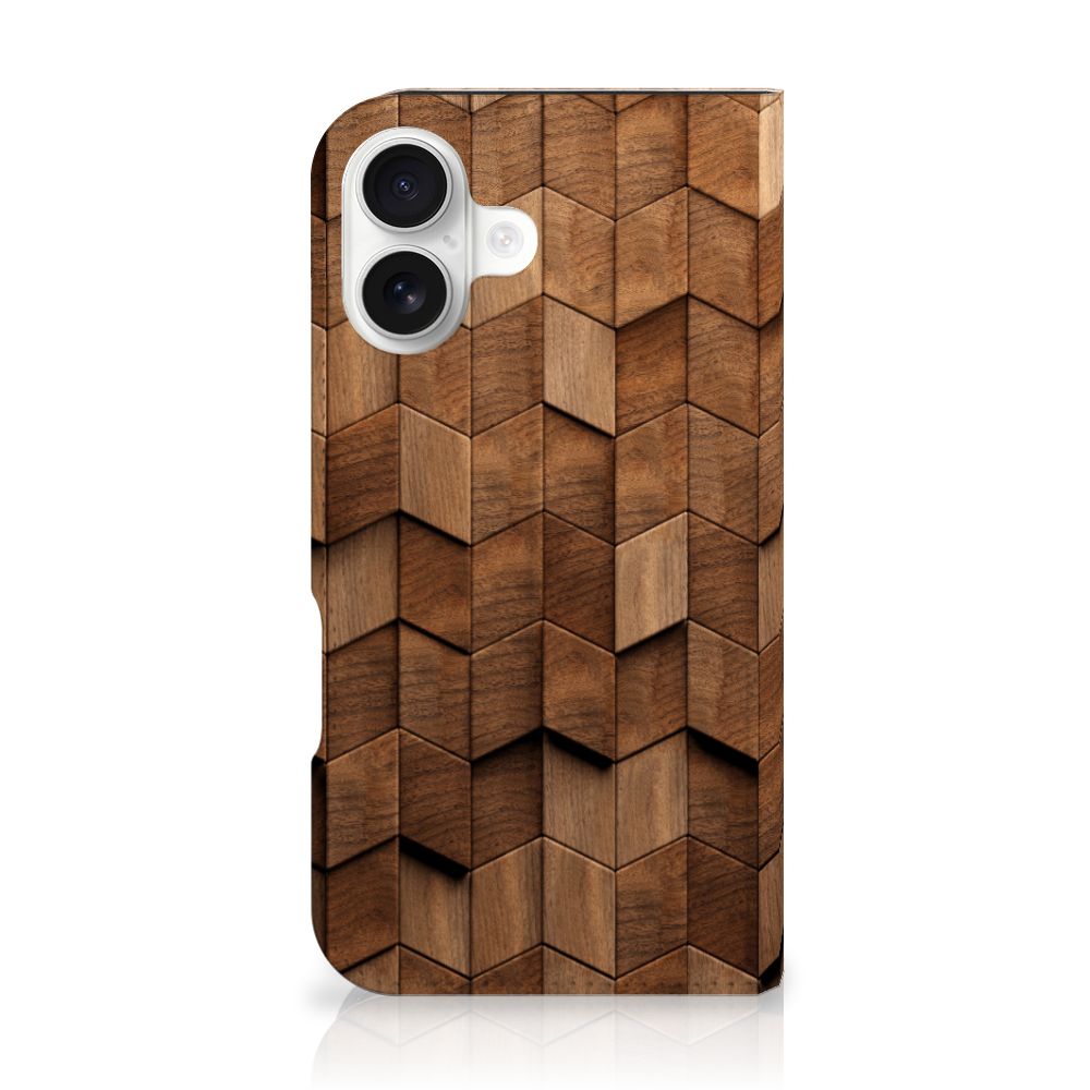 Book Wallet Case voor iPhone 16 Wooden Cubes