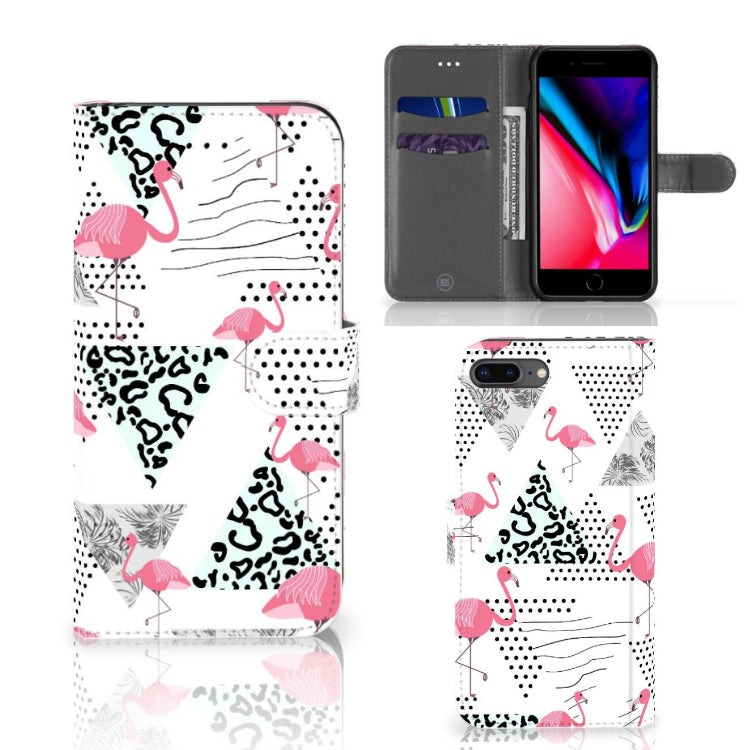 Apple iPhone 7 Plus | 8 Plus Telefoonhoesje met Pasjes Flamingo Triangle