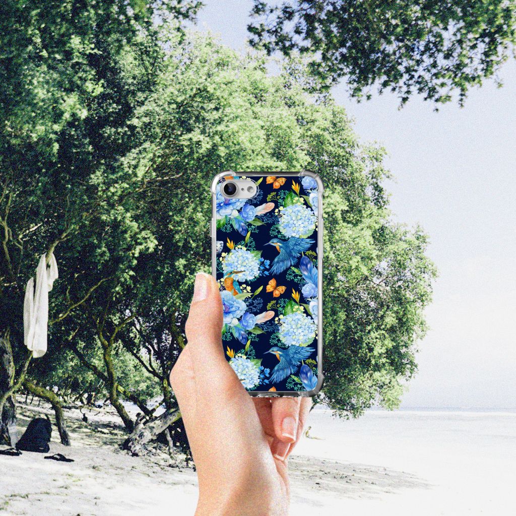 TPU Case voor iPhone SE 2022 | SE 2020 | 8 | 7 Flowers Blue