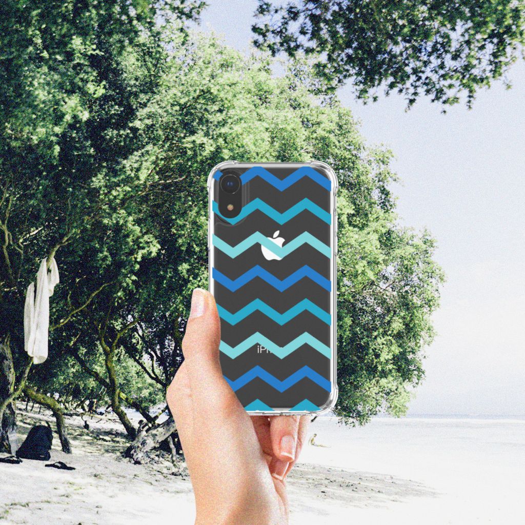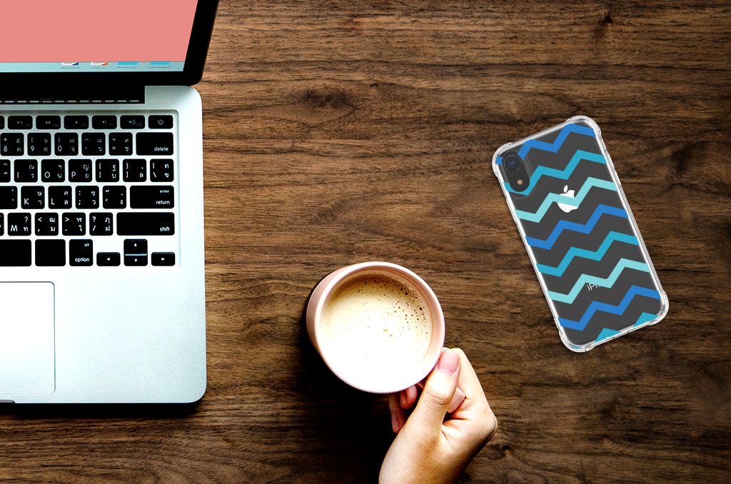 Apple iPhone Xr Doorzichtige Silicone Hoesje Zigzag Blauw