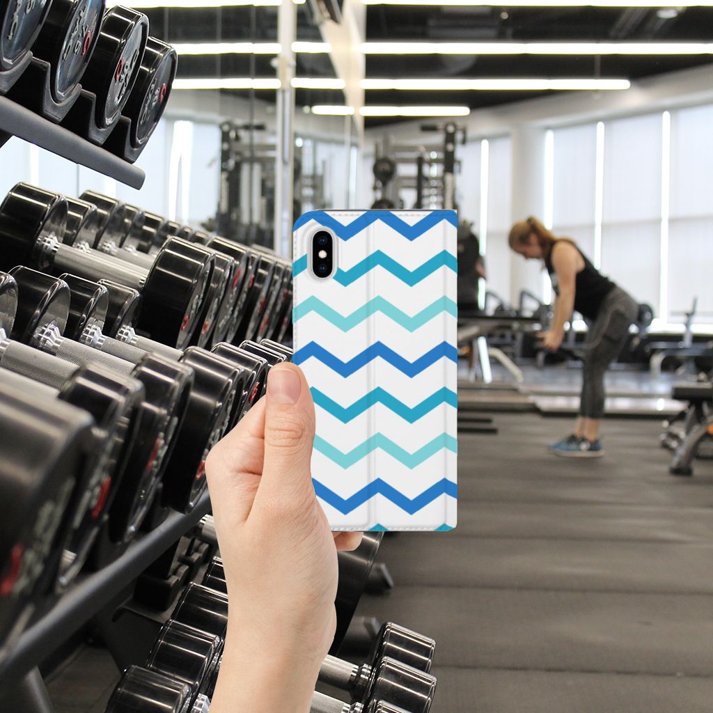 Apple iPhone Xs Max Hoesje met Magneet Zigzag Blauw