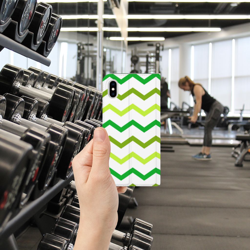 Apple iPhone Xs Max Hoesje met Magneet Zigzag Groen