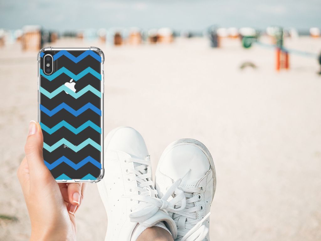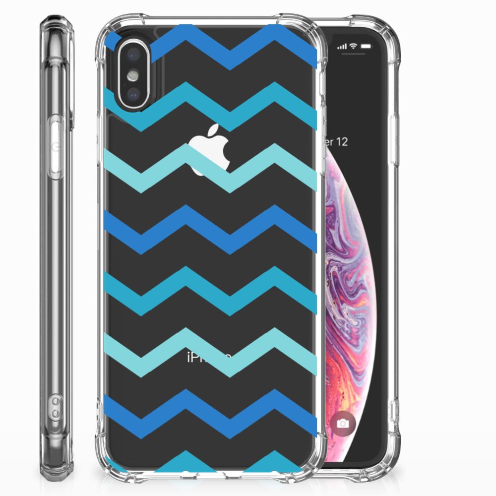 Apple iPhone Xs Max Doorzichtige Silicone Hoesje Zigzag Blauw