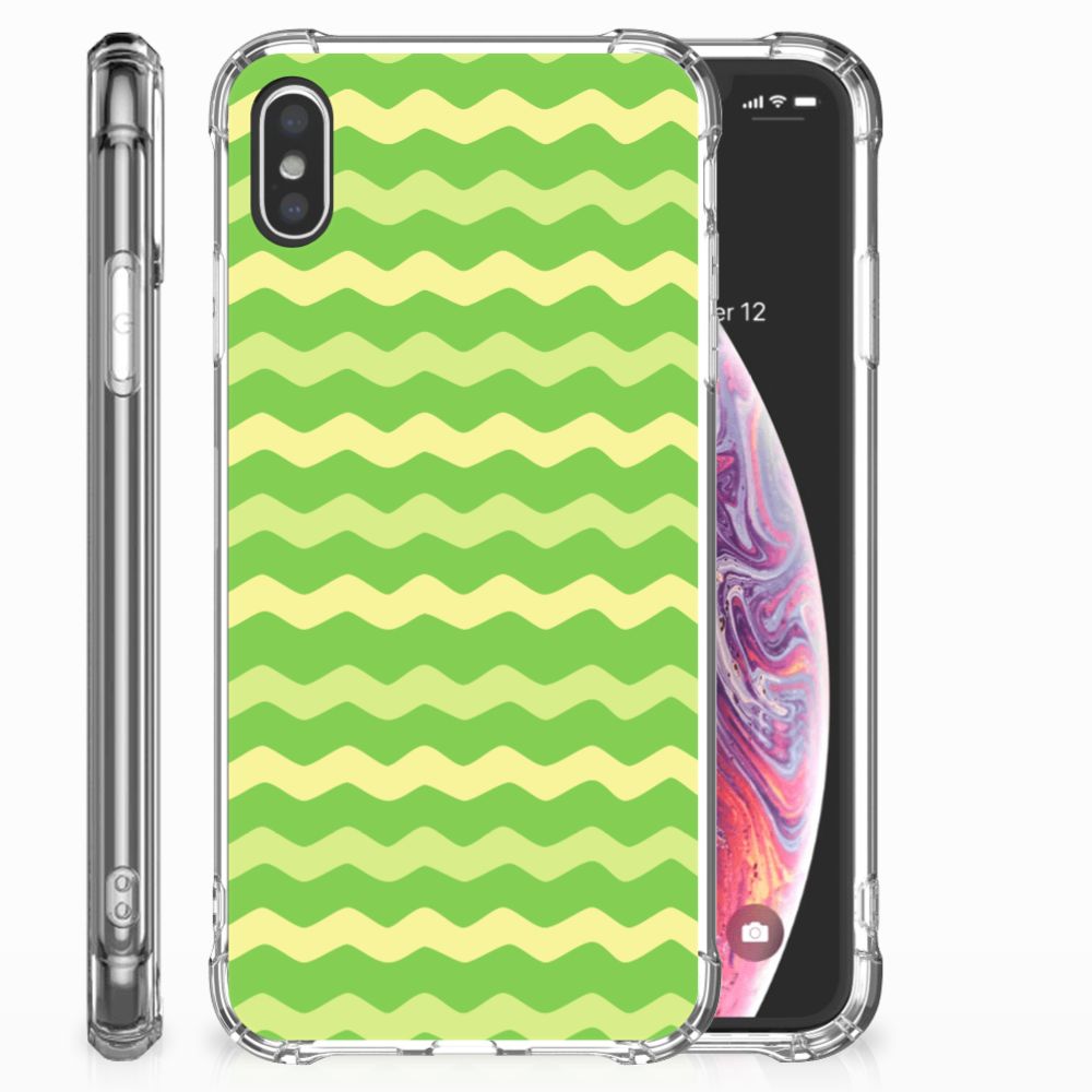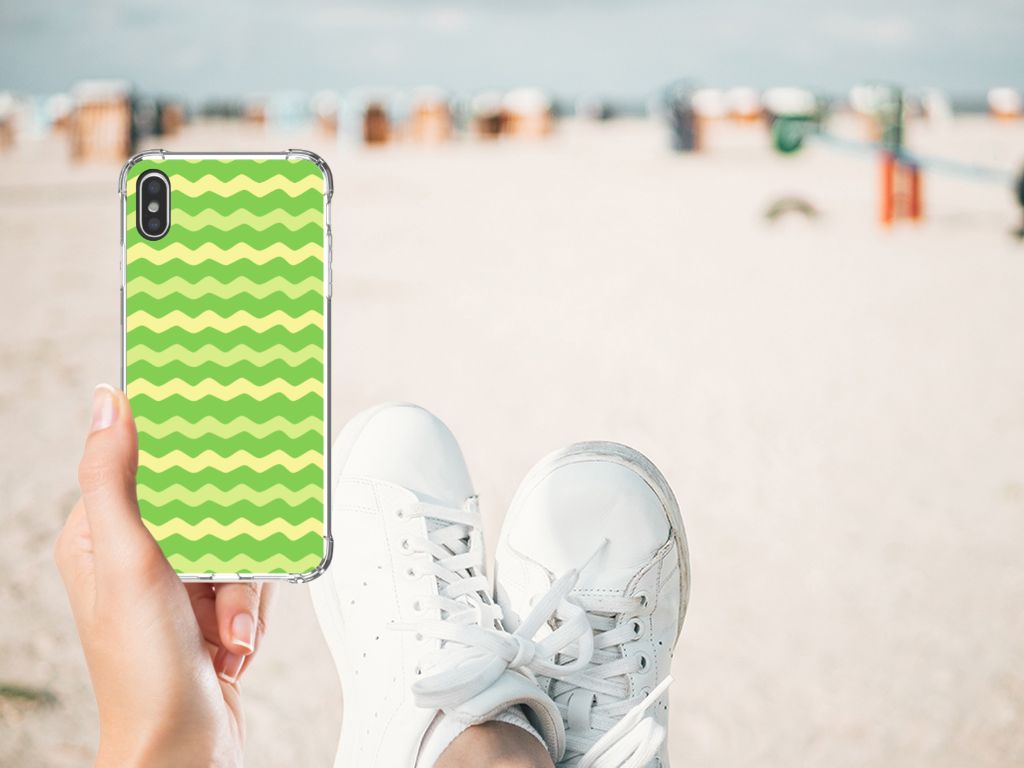 Apple iPhone Xs Max Doorzichtige Silicone Hoesje Waves Green