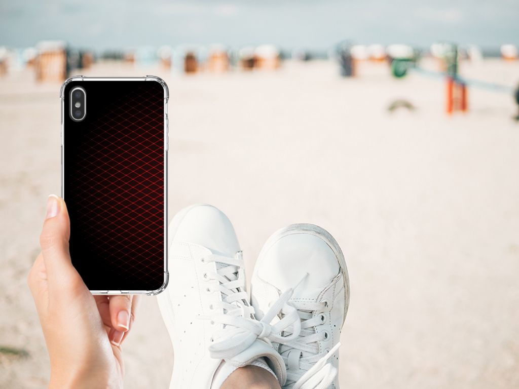 Apple iPhone Xs Max Doorzichtige Silicone Hoesje Geruit Rood